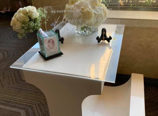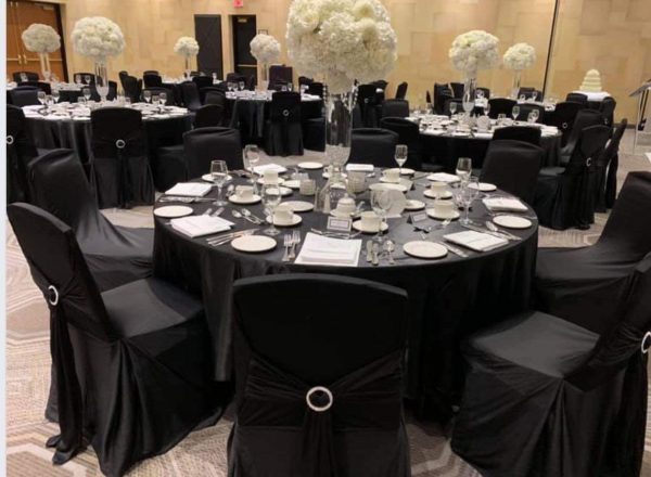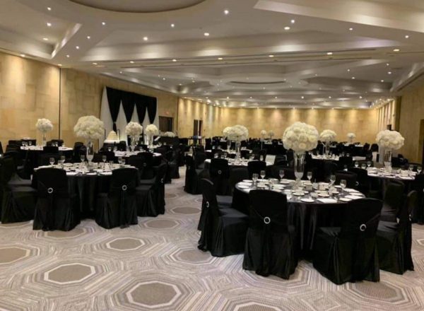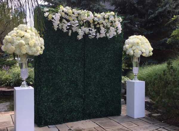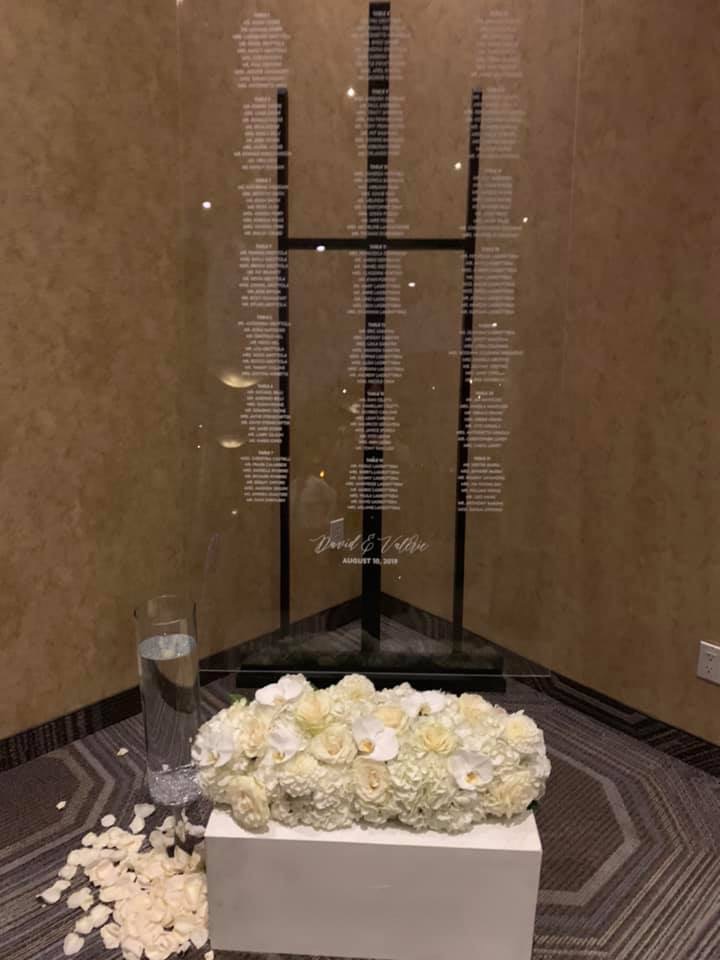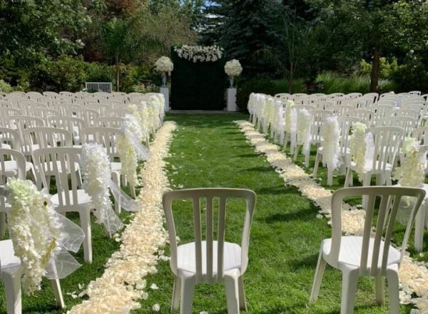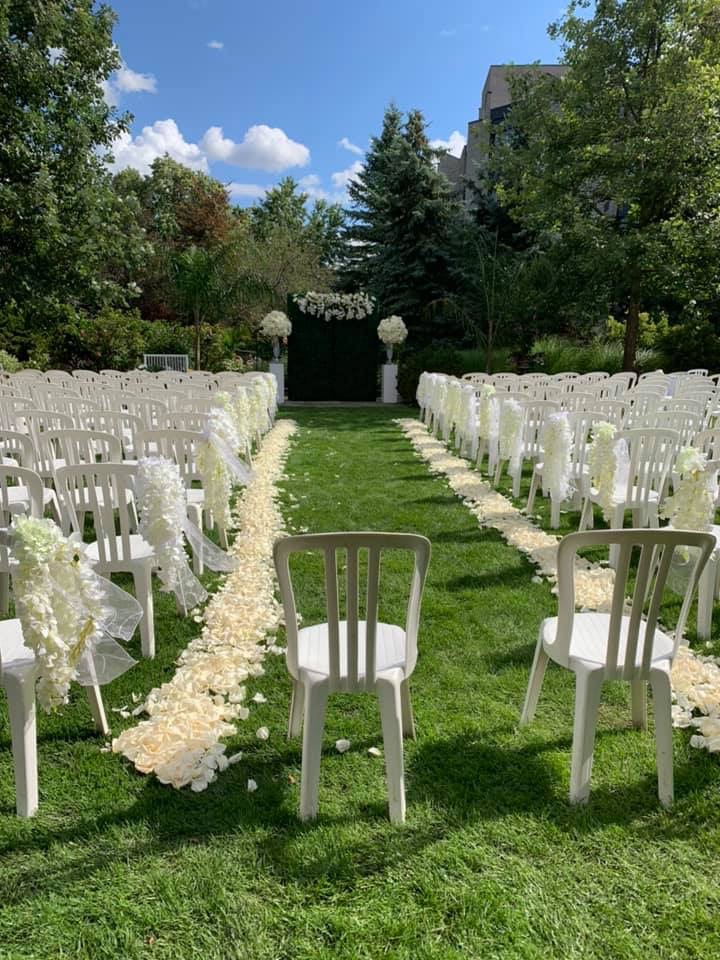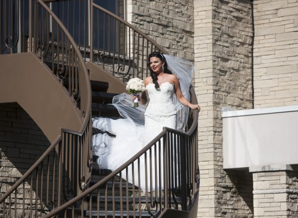 Valerie and David chose White Oaks for their Black Tie wedding! Carrying a classic White Rose mounded style bouquet Valerie walked down the aisle lined with a sea of rose petals for the garden ceremony! An elegant reception followed in the grand ballroom….towering centerpieces filled with fragrant Garden Roses and Hydrangea brought a classic look of sophistication!