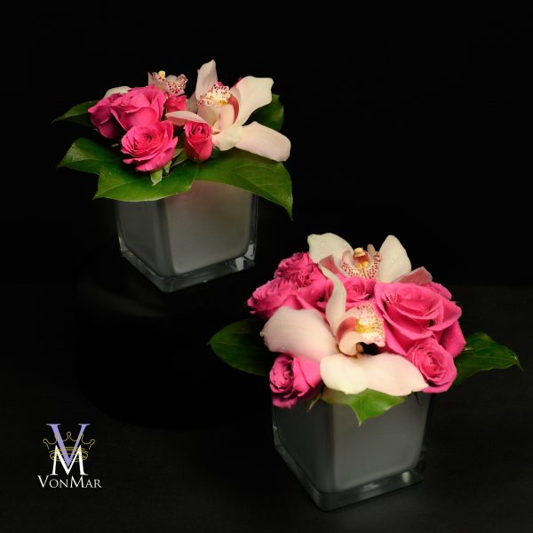Blush Pink Garden Roses, Freesia, Cymbidium Orchids and Carnations in a mound of Green Hydrangeas and classic greenery…. A beautiful choice for every occasion.